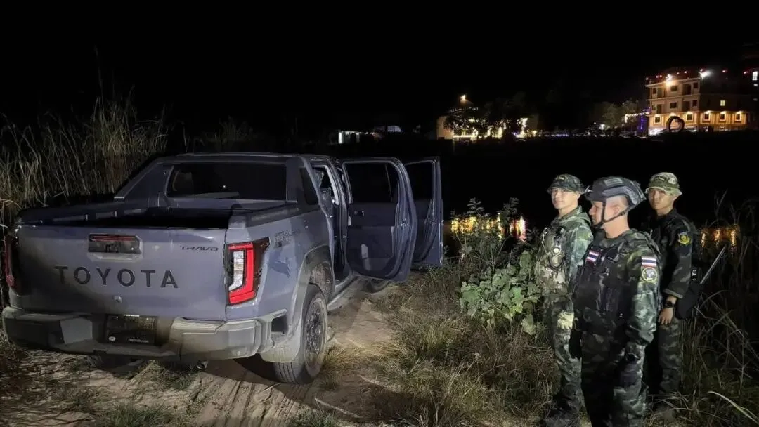 那黎宣特种部队“御林军”在泰缅边境达府湄索县班敦猜村区域执行巡逻检查任务时,发现一名可疑人员趁夜色逃跑。经搜查周边区域,在莫艾河边发现一辆未悬挂牌照的皮卡车,现场无人认领。#初步推测该车辆可能正准备被非法偷运至缅甸境内