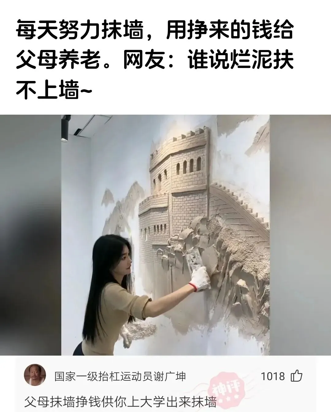 震惊!抹墙也能养爹娘?网友:这烂泥比谁都强!