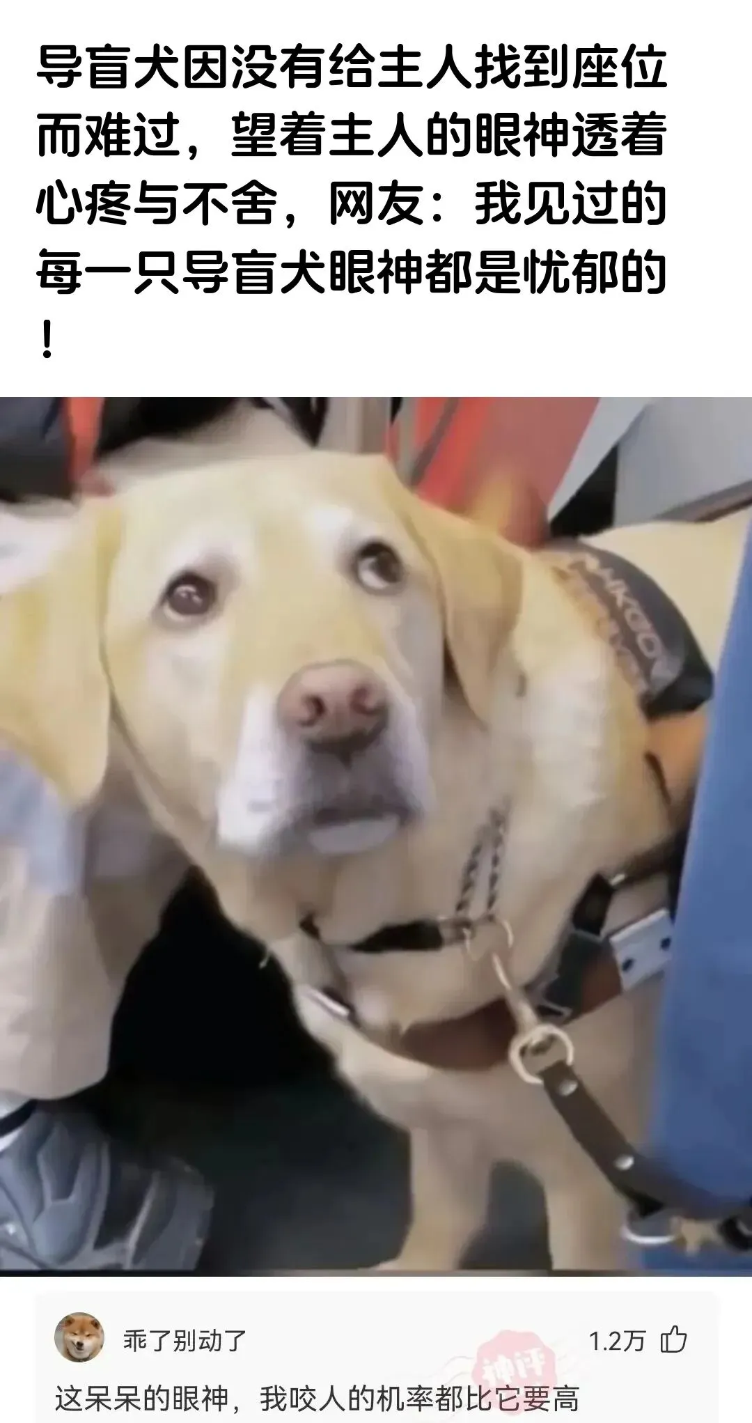 导盲犬没给主人找到座急得直跺脚!这小眼神心疼到哭啊!