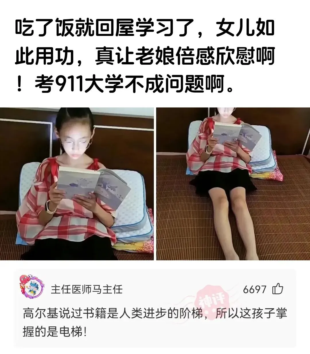 妈呀!闺女扒拉完饭就扎进屋里啃书!这劲头不上911都亏得慌!老娘偷着乐坏啦!