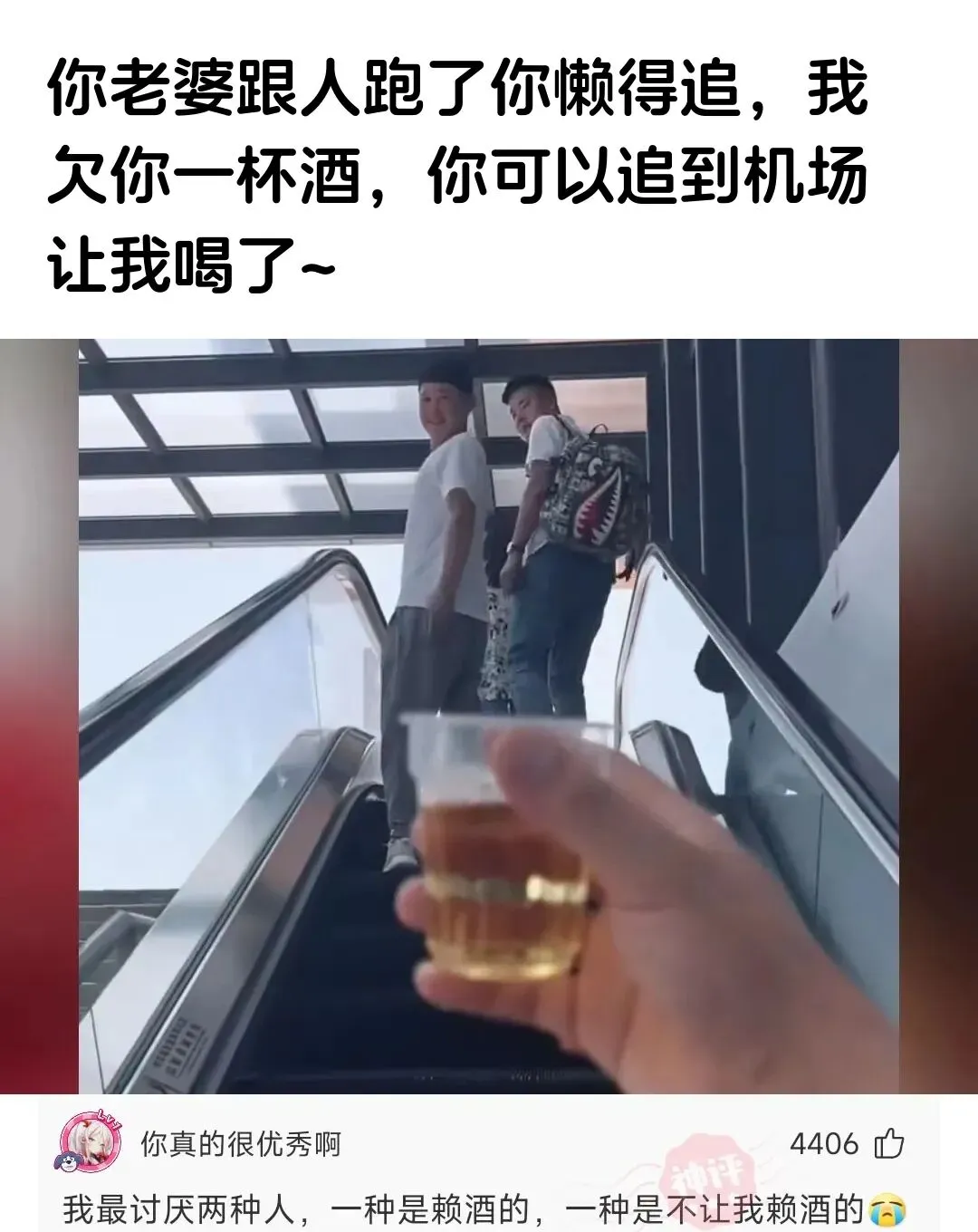 老婆跟人跑了都懒得追?欠你的酒必须还!快追去机场喝到爽~
