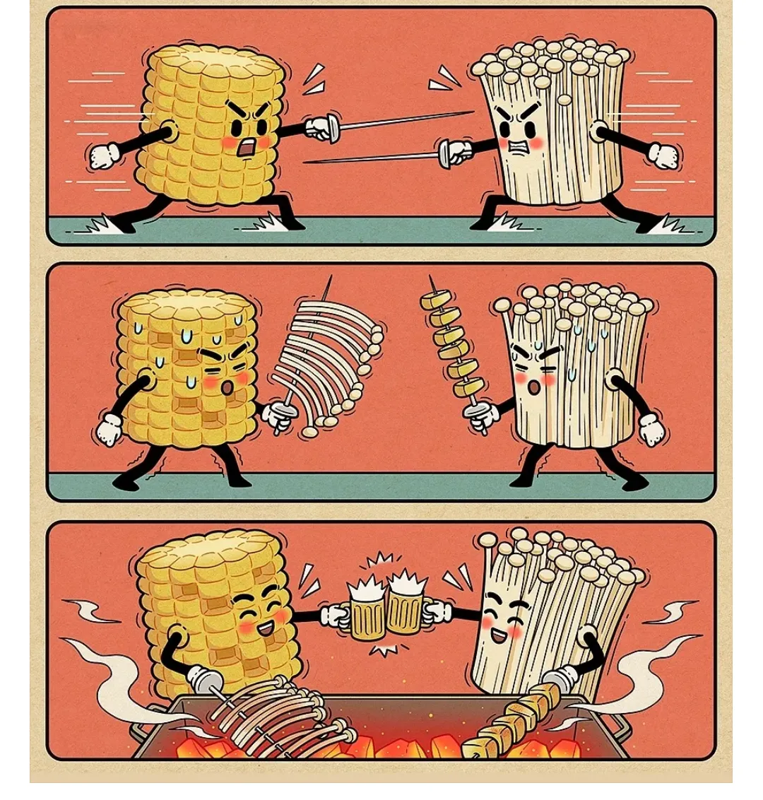 烤玉米和烤金针菇