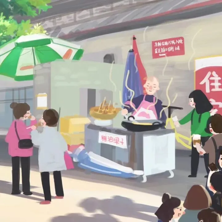 做豆瓣、炸糖油果子、挤地铁、吃串串……只要她觉得有意思的,都会仔细画下来,放在朋友圈和朋友分享。