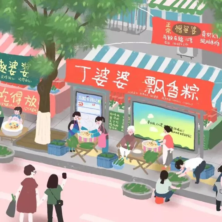 每到端午节,成都马鞍东路上的卖粽子的盛况。