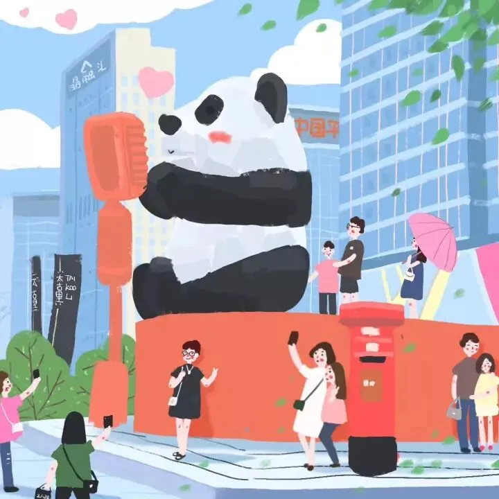 比如,春熙路上的标志性“大熊猫”。