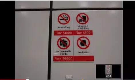 不过如果你是榴莲爱好者,那么请注意:以严格出名的新加坡,地铁里的禁止标识明文规定——不准带榴莲。