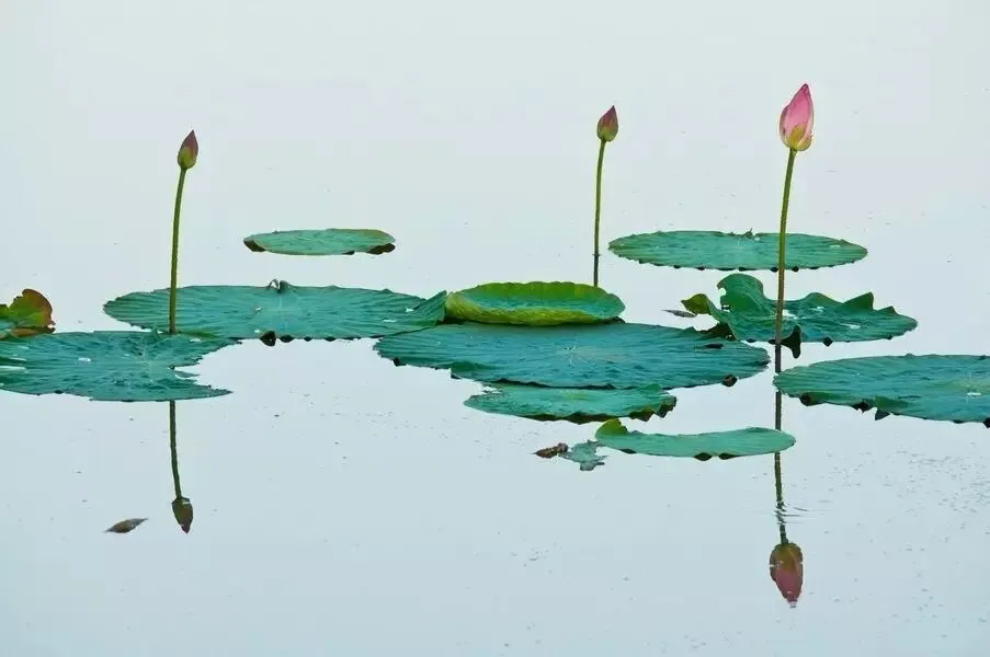 ——站在水边,望到那面,居然觉着有些远呢!这平铺着、厚积着的绿,着实可爱。她松松的皱缬着,像少妇拖着的裙幅;她轻轻的摆弄着,像跳动的初恋的处女的心;她滑滑的明亮着,像涂了“明油”一般,有鸡蛋清那样软,那样嫩,令人想着所曾触过的最嫩的皮肤;她又不杂些儿尘滓,宛然一块温润的碧玉,只清清的一色——但你却看不透她!