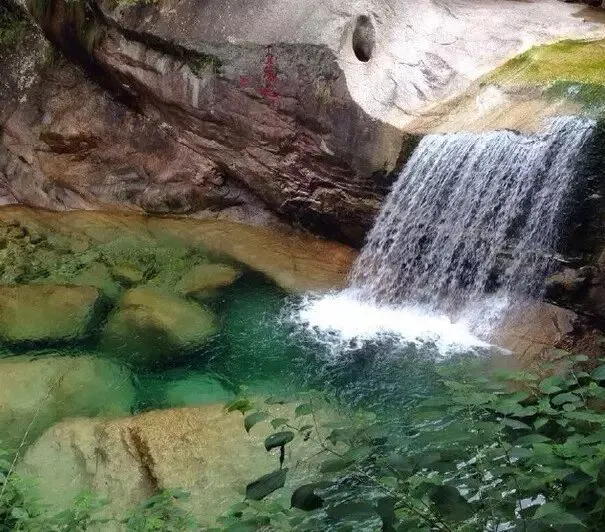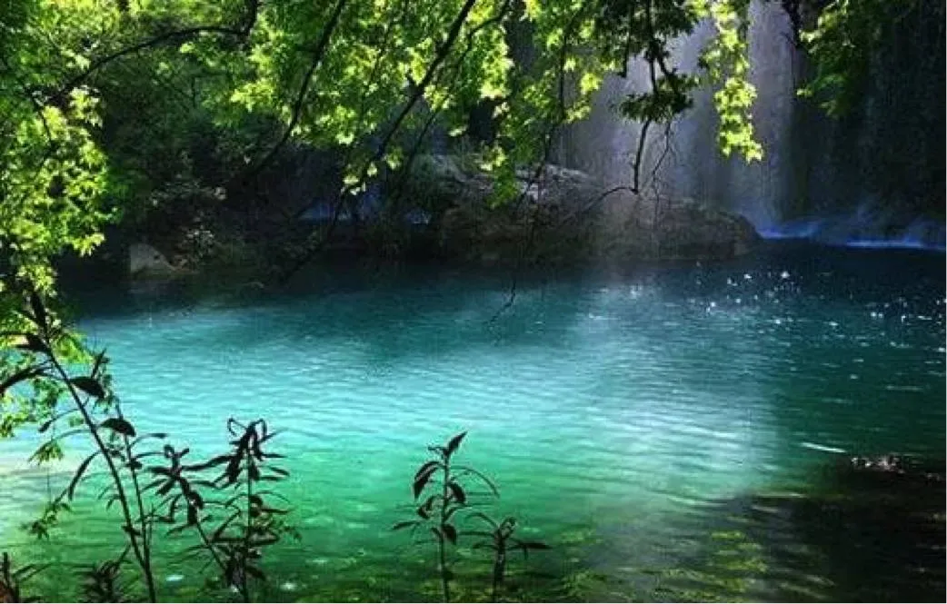到仙岩的时候,我惊诧于梅雨潭的绿了。梅雨潭是一个瀑布潭。仙瀑有三个瀑布,梅雨瀑最低。走到山边,便听见花花花花的声音;抬起头,镶在两条湿湿的黑边儿里的,一带白而发亮的水便呈现于眼前了。