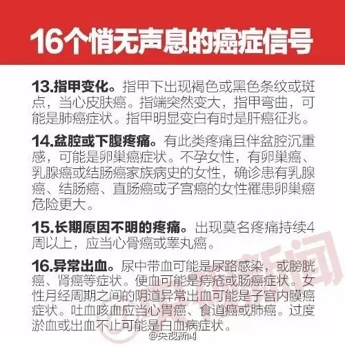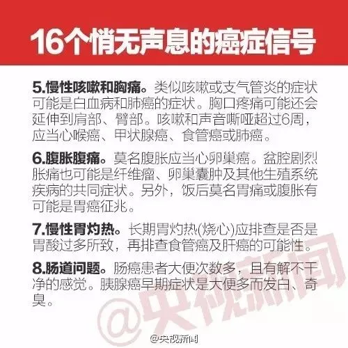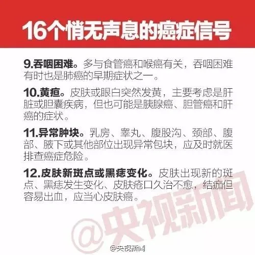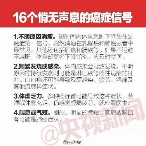 当前位置:首页>美女资讯>必看丨你是“癌症候选人”吗? 悄无声息的16个癌症信号一定要了解!