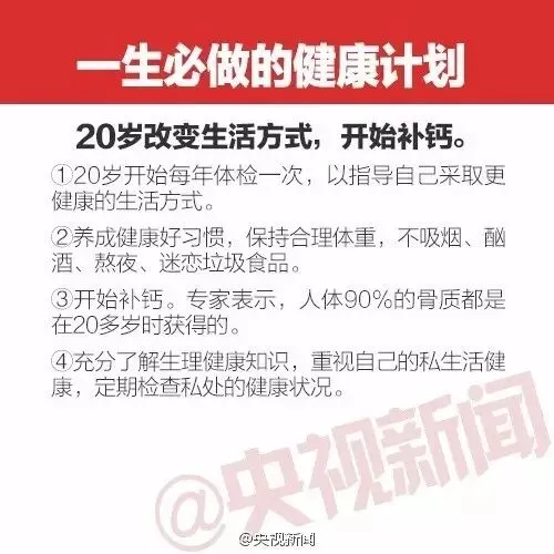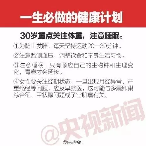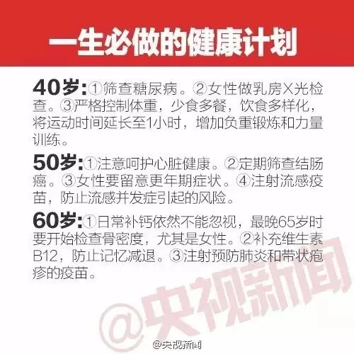 戳图了解这些癌症信号和一生要做的体检计划:
