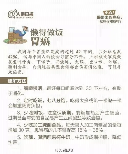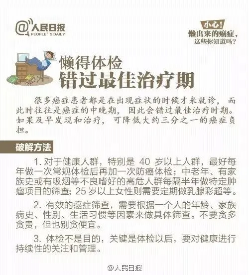 注意!这些癌症可能“懒”出来!