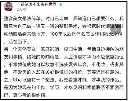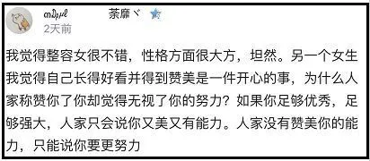 有人认为整容女性格大方坦然。而天然女却只被大家看到颜值,没有看到能力,网友称:人家没有咱们你的能力,那说明你更需要努力。