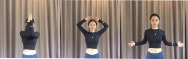 • 脖颈中正,弯曲双手肘,手肘贴靠,最大幅度的往前伸,有点含胸,尽量保持手肘贴住,往上走到极限,不得不分开时往外往后扩展胸腔,再往后往下拉,每一个点都做到最大幅度,做到痛苦;