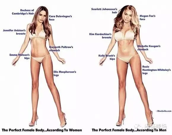 女人眼中的最完美女性身体(左)男人眼中的完美女性(右)