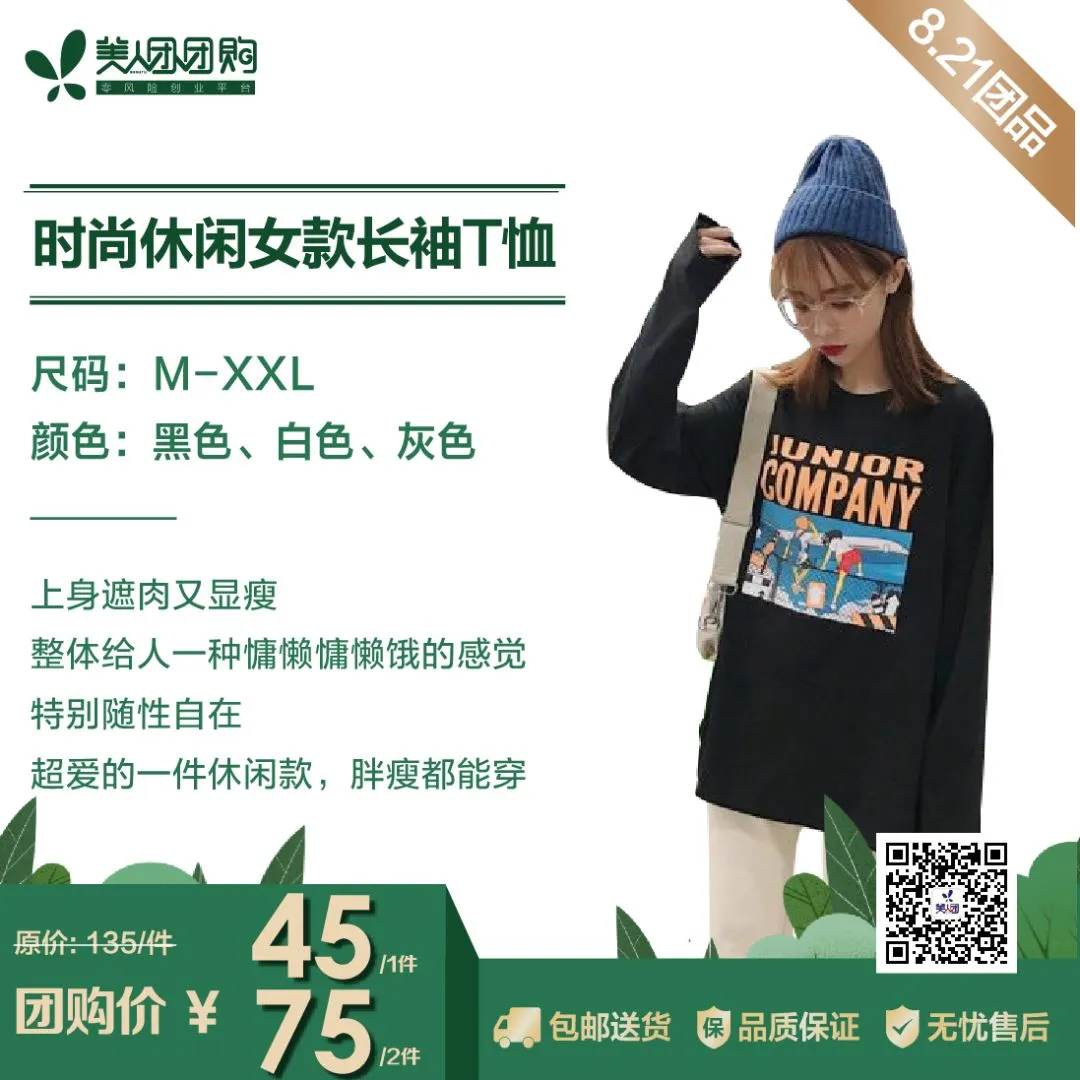 美人团团品⑤:时尚休闲女款长袖T恤