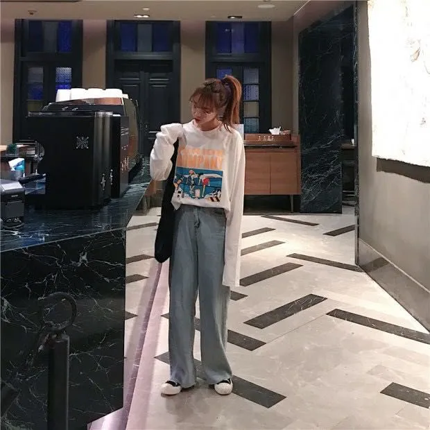 💕搭配牛仔裤,非常日系休闲风,不挑人穿,懒懒的一套,真的很舒服~