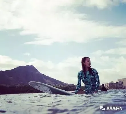 尹珍序最喜欢的是户外运动,其中冲浪更符合她的审美,她和老公也是在冲浪时认识的。