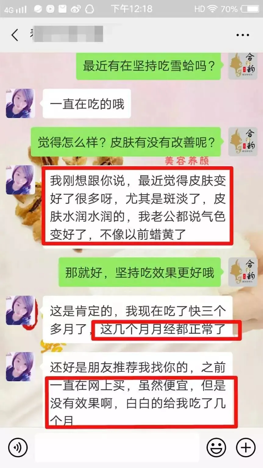 我也是吃她家的雪蛤,吃了一个月有8次,效果很不错
