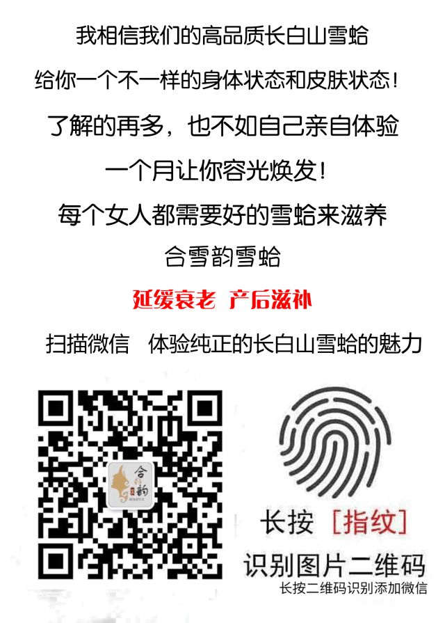 在我吃到第3年雪蛤的时候,我觉得对我的身体状态改变已经很好了,皮肤红润细腻了很多、 皱纹几乎看不到了、暗疮雀斑自从吃了雪蛤就没有在长过,身体各种状态基本恢复到生孩子30岁左右的状态!既然雪蛤对我效果这么好,而且城市女性工作压力大、而且空气质量也差,用再贵护肤品也达不到好的效果,而且对于护肤品的成本来说,雪蛤的成本要低很多,那么我为什么不把这么好的东西推荐给更多的女性呢,于是我下决心要把雪蛤当做我的事业来做。说干就干,我2017年3月便辞职开始着手准备我的雪蛤事业。