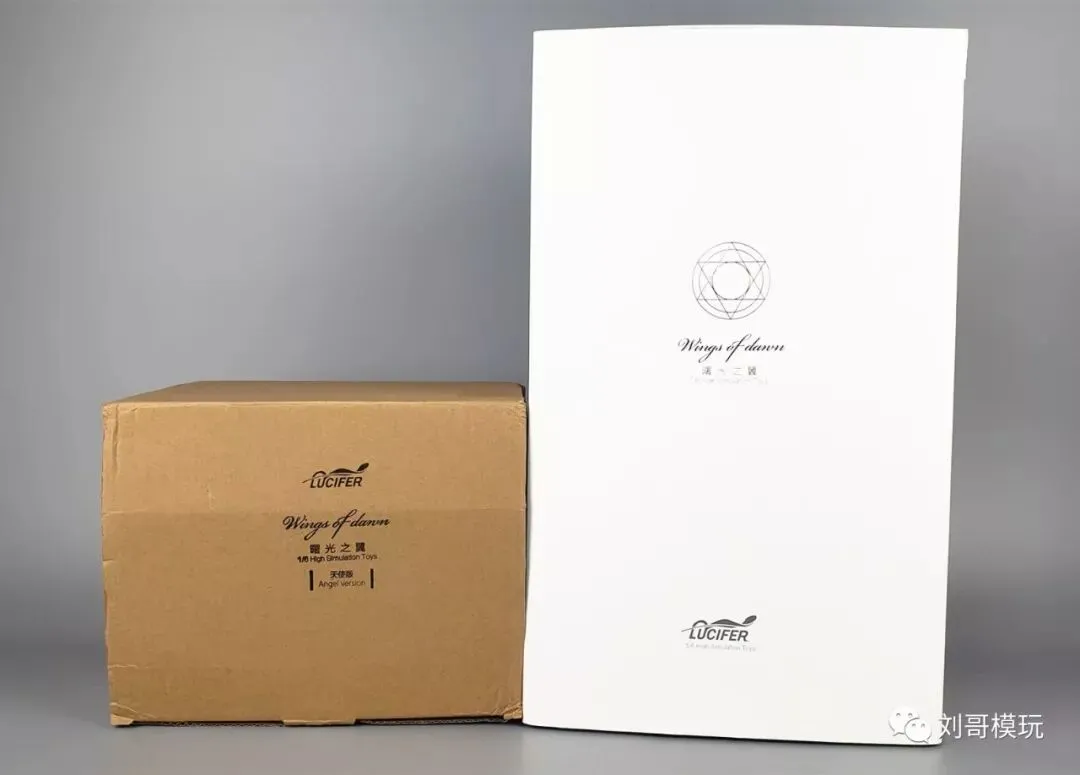 包装盒非常简单,一大一小,表面印有厂家路西法的logo和曙光之翼天使版等字样。