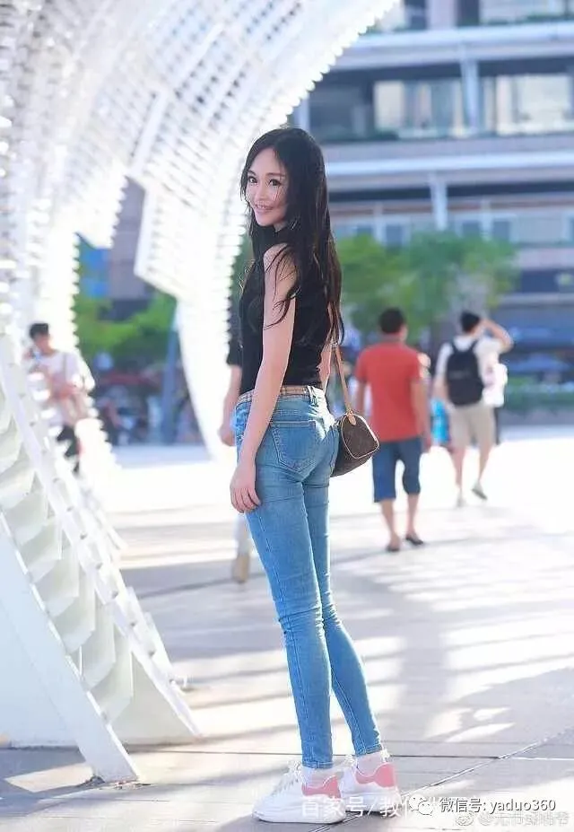 一件黑色的吊带上衣搭配一件修身的牛仔裤,再搭配一双小白鞋,看上去没有高跟鞋的那种女人味。但是这种休闲的搭配看上去很阳光,就是那么随意的一个莞尔一笑,是不是看上去都是万种风情呢?