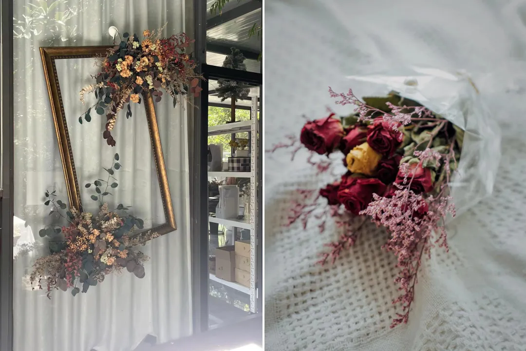 曾经作为消费者的诗蝶有过很多因运输问题造成的糟糕体验。为了最大程度降低运输风险,她首先选择干花、永生花来试水。这类花材对运输的要求相对而言没有鲜切花那么高。