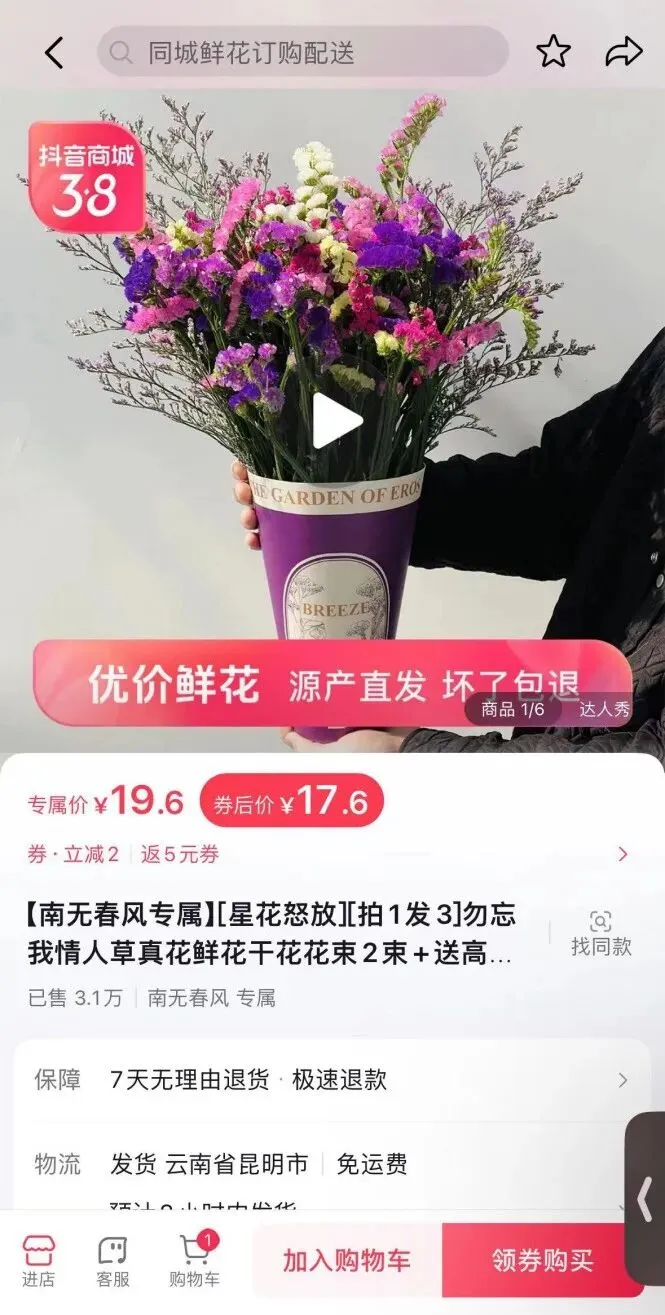 她发现自己网购的花都有同一个发货地:昆明。