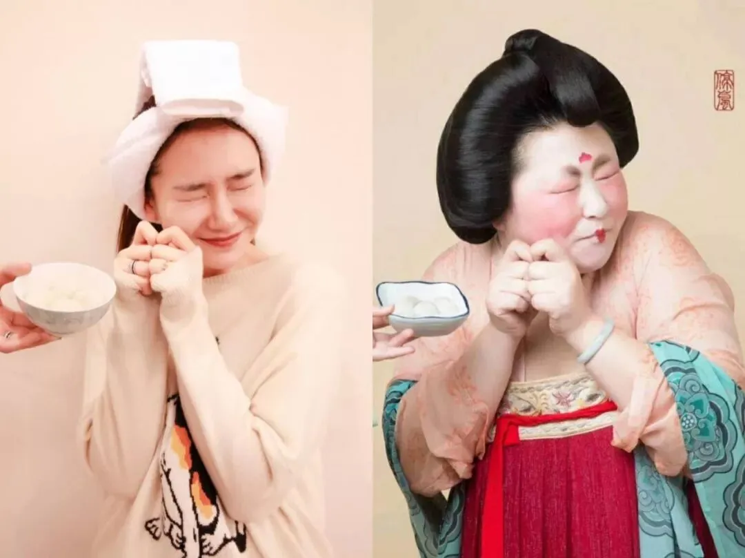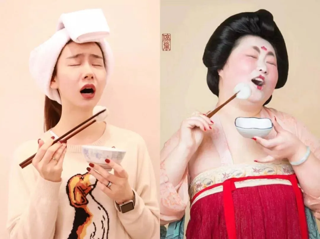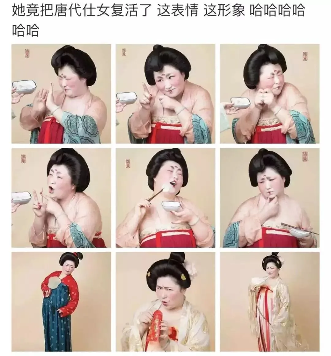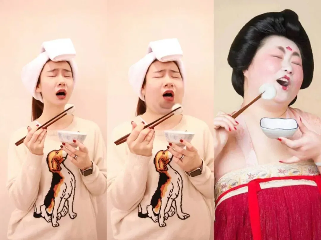 当各位猪精女孩正在苦恼怎么能让皮肤更滑一点,身材更瘦一点,对美食的欲望降到冰点的时候,元宵节一组胖妹子cos唐代侍女吃元宵的表情包却火速席卷了网络,喏,就是这组——