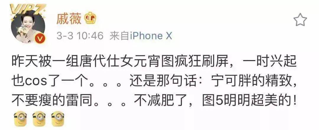不仅如此,戚薇更是放话给广大猪精女孩们:“宁可胖的精致,不要瘦的雷同”!这......这碗鸡汤小编先干为敬!