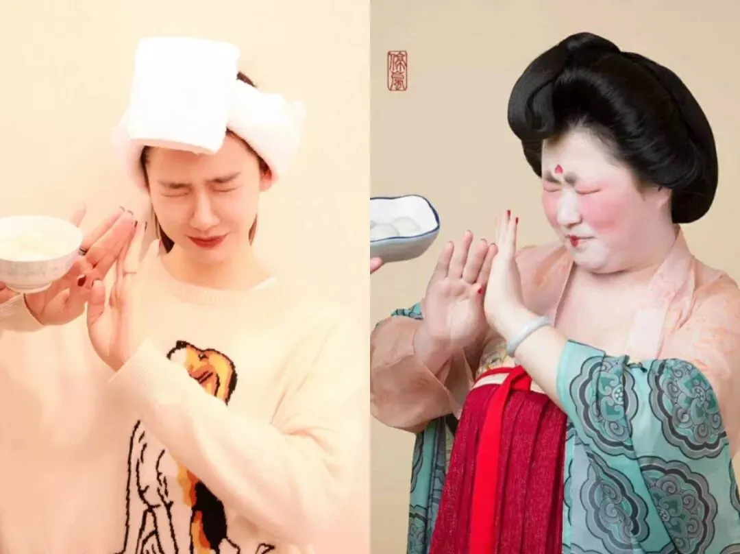 这生动的表情,丰富的肢体语言,配上恰当的服装搭配,确定不是从唐朝穿越来的吗?非常想给这位姑娘点个赞了!