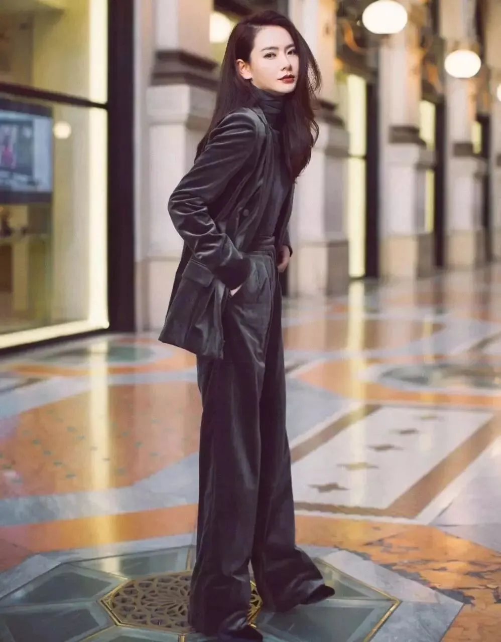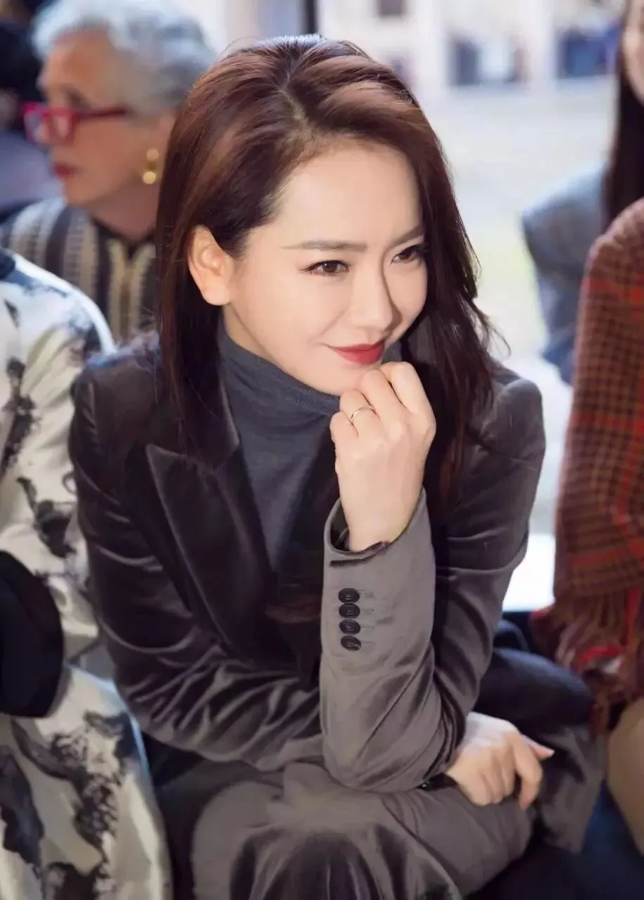 在秀场的戚哥女王范十足,优雅性感一举一动都令人着迷。灰色西装显得非常干练,而丝绒的材质又散发着迷人的高级感,配上精心挑选的豆沙色口红,复古到飞起好嘛!