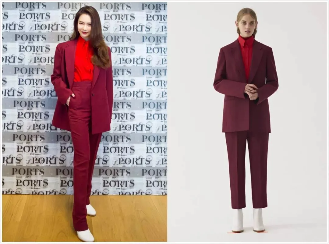 第四套红色西装套装整体复古的搭配高级感十足,是戚薇最擅长的时尚look之一,上身效果也是好的没话说!量身定做没跑了~