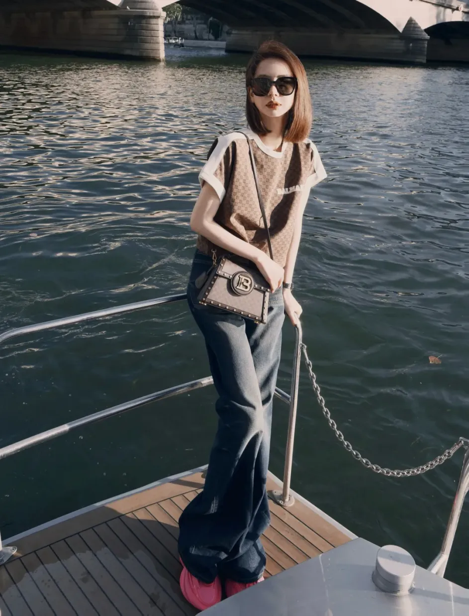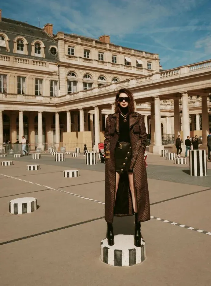 百变女王戚薇当然远不止街头酷飒或雍雍华贵的风格,这套美拉德配色的长风衣搭配厚底战靴的look,克制内敛中又透露着几分锋利的光芒,巴黎街角中她的身影俨然成为涌动的美景
