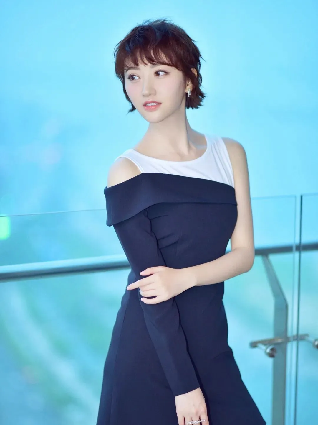 长发变短发后,脖子的存在也变得很突出了,本身脖颈修长的话看起来会更瘦更显高,剪短些能放大优点。