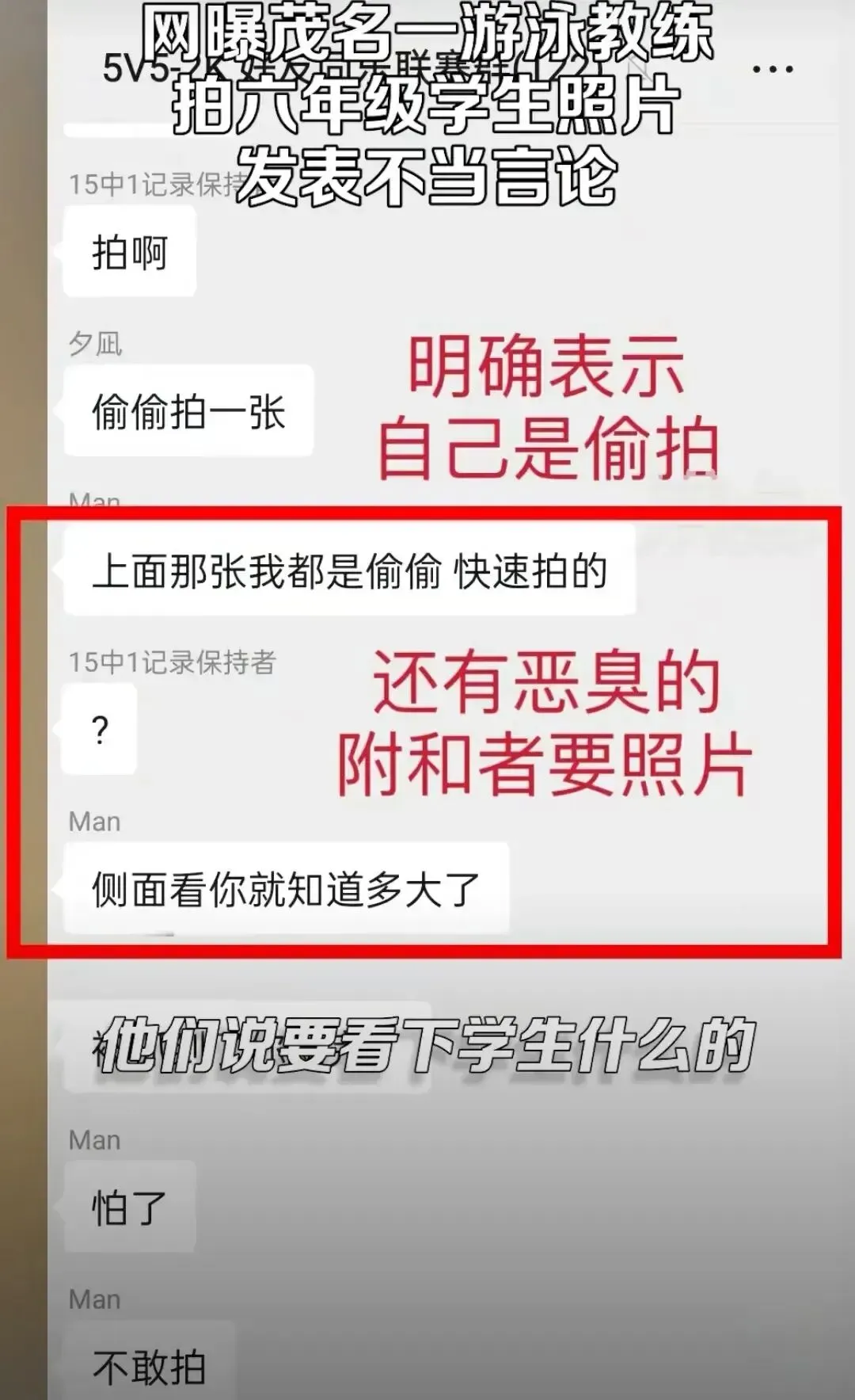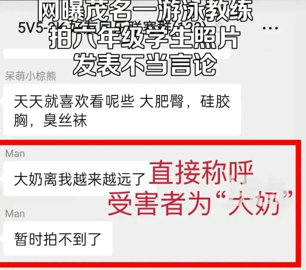 “6年级,奶真大”!游泳教练偷拍女学生泳照,群发意淫!聊天记录真下流...