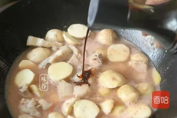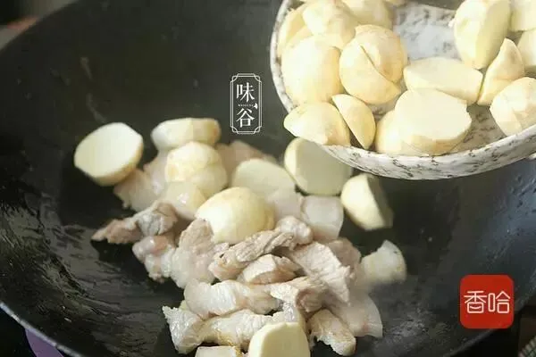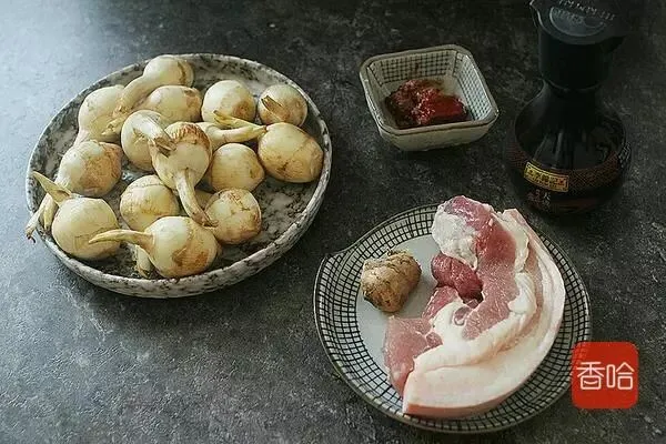茨菰360克、五花肉200克、李锦记酱油2大勺、糖1小勺、南乳1大块、姜2片