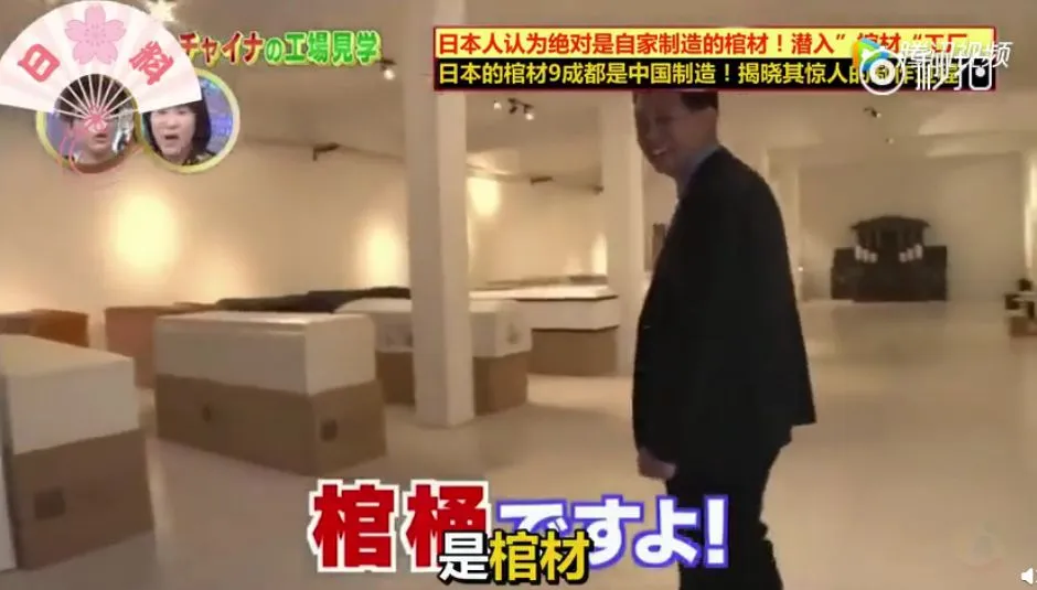节目最后,棺材工厂的老板携全体员工,祝愿日本的民众:请一定要使用我们制作的棺材哦!