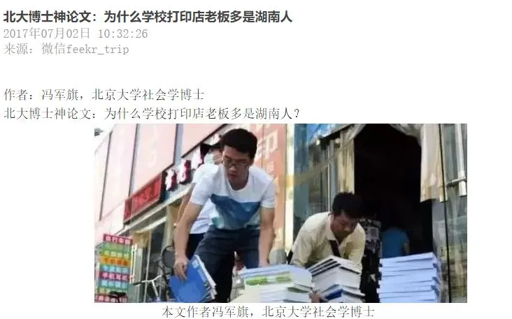 曾经有一位北大博士还专门写了一篇调查论文《新化复印产业的生命史》,详细讲述了新化人是如何“垄断”打印店行业的。
