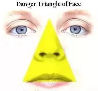 面部有一个“危险三角区”,静脉非常丰富且血管没有瓣膜——相当于没有阻止血液双向回流的“阀门”,随意挤压痘痘,血液可能单向流向颅内,“三角区”内的感染很容易扩散到颅内。