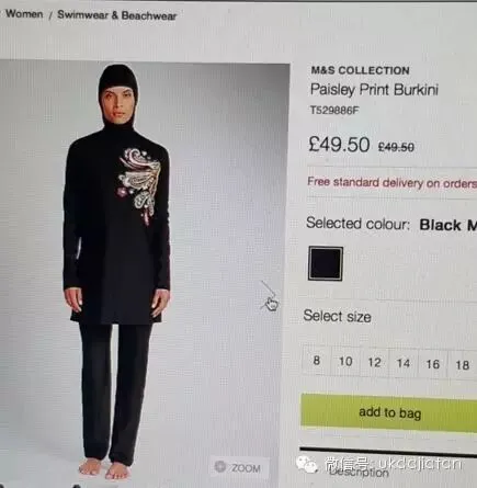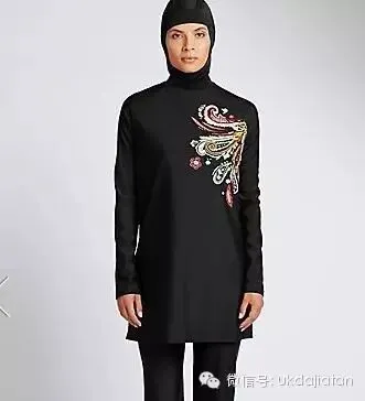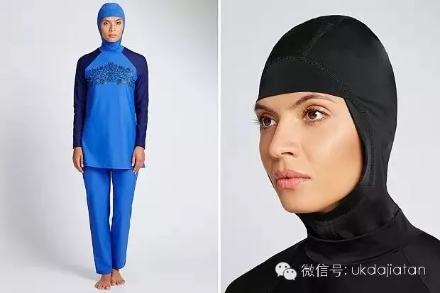 这款名为Burkini(又称“布基尼”)的全身装,是玛莎百货推出的泳衣,只有黑蓝两色,专为穆斯林女性设计,可以遮住身体而只露出脸和双手双脚,与一般意义的泳衣大相径庭,引起广泛议论。