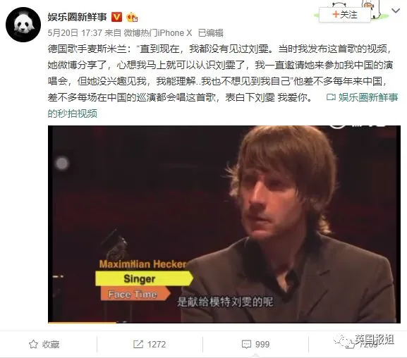 上个月520时候,热搜上出现过一条“德国歌手表白刘雯”话题,不知道大家还记不记得。