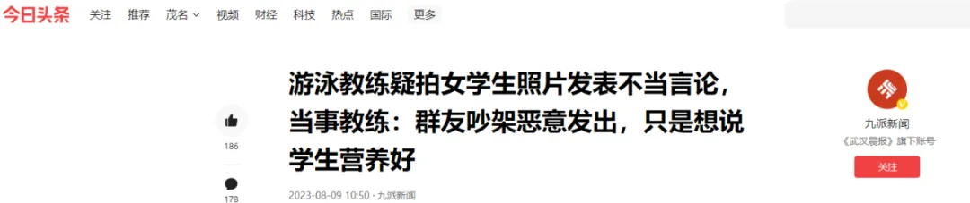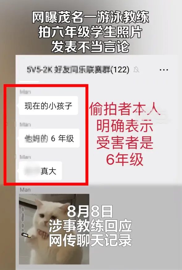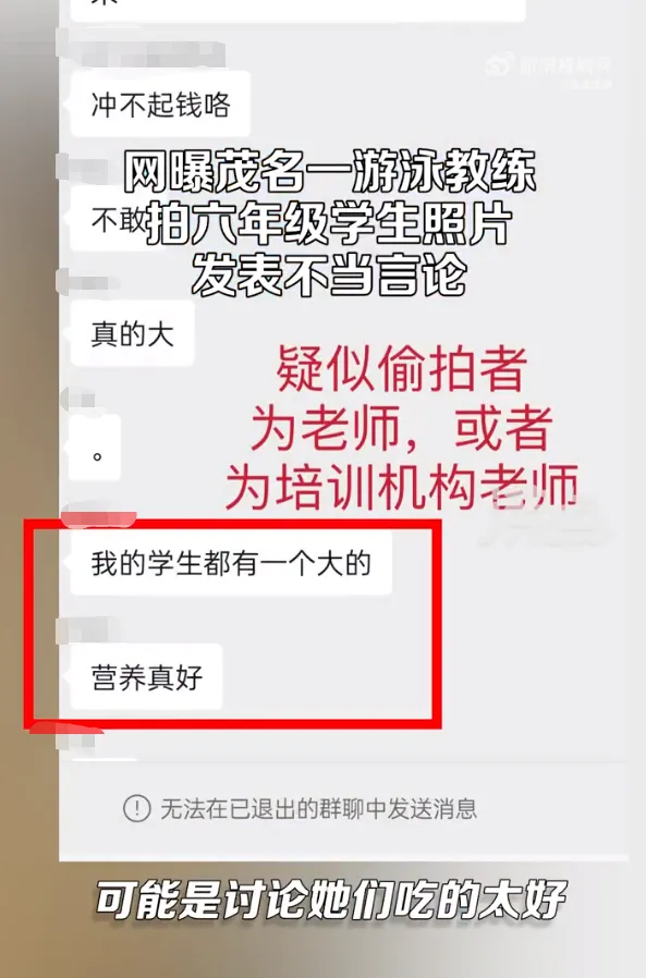 8月9日,据新闻晨报援引沸点视频报道,近日广东茂名有网友爆料称,某游泳培训机构老师将学生照片分享到游戏群内,发表不当言论。