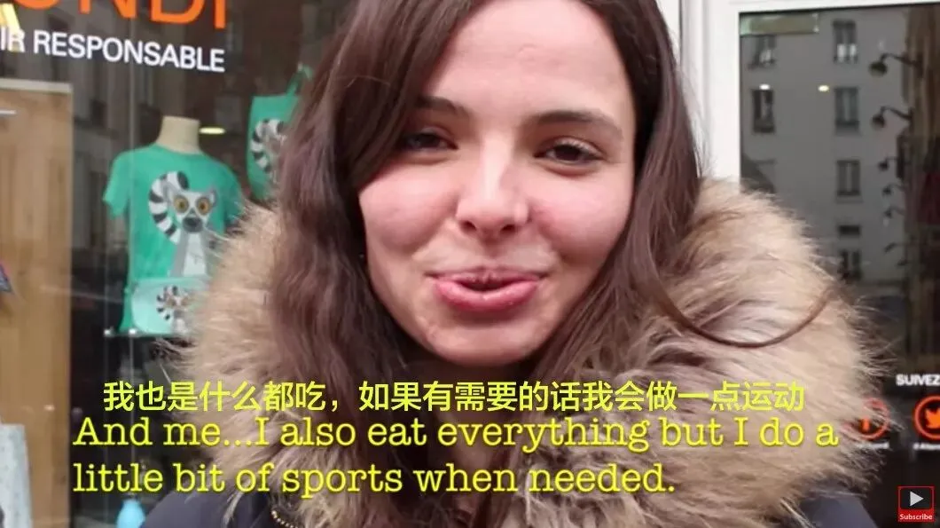YouTube上有个视频,是在法国的街头随机采访法国女人们,问她们的饮食和运动习惯,然后得到了以下的答案