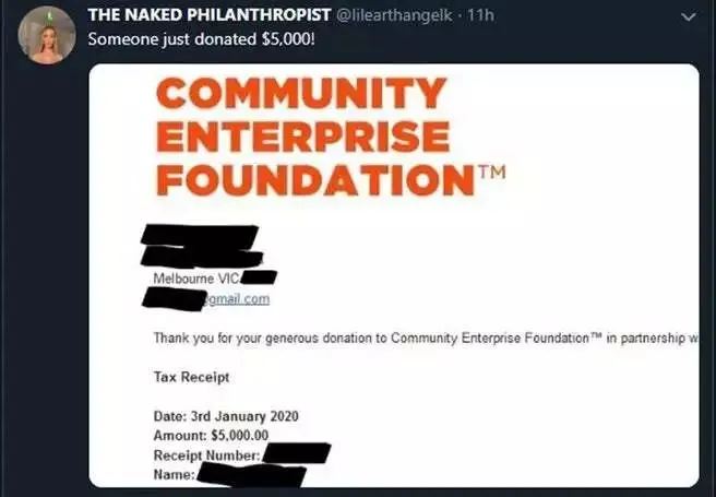 她表示,最初只是想用这个办法“筹个几千块”,没想到网友异常踊跃,活动第一日就收到2万条带收据的私信,目前筹款金额已超10万澳元,而她收信箱还有几千条未读信息。