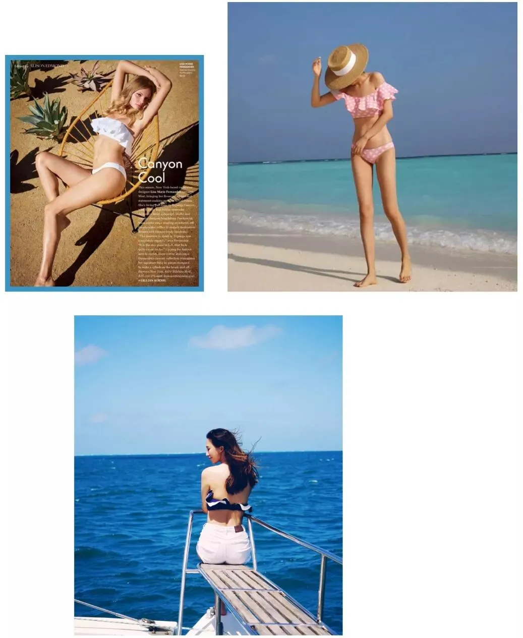 我在毛里求斯穿的泳衣来自Lisa Marie Fernandez,他们家的泳衣有个很经典元素 — 扇贝褶皱。很像起伏的小波浪,视觉上会放大柔和胸部线条