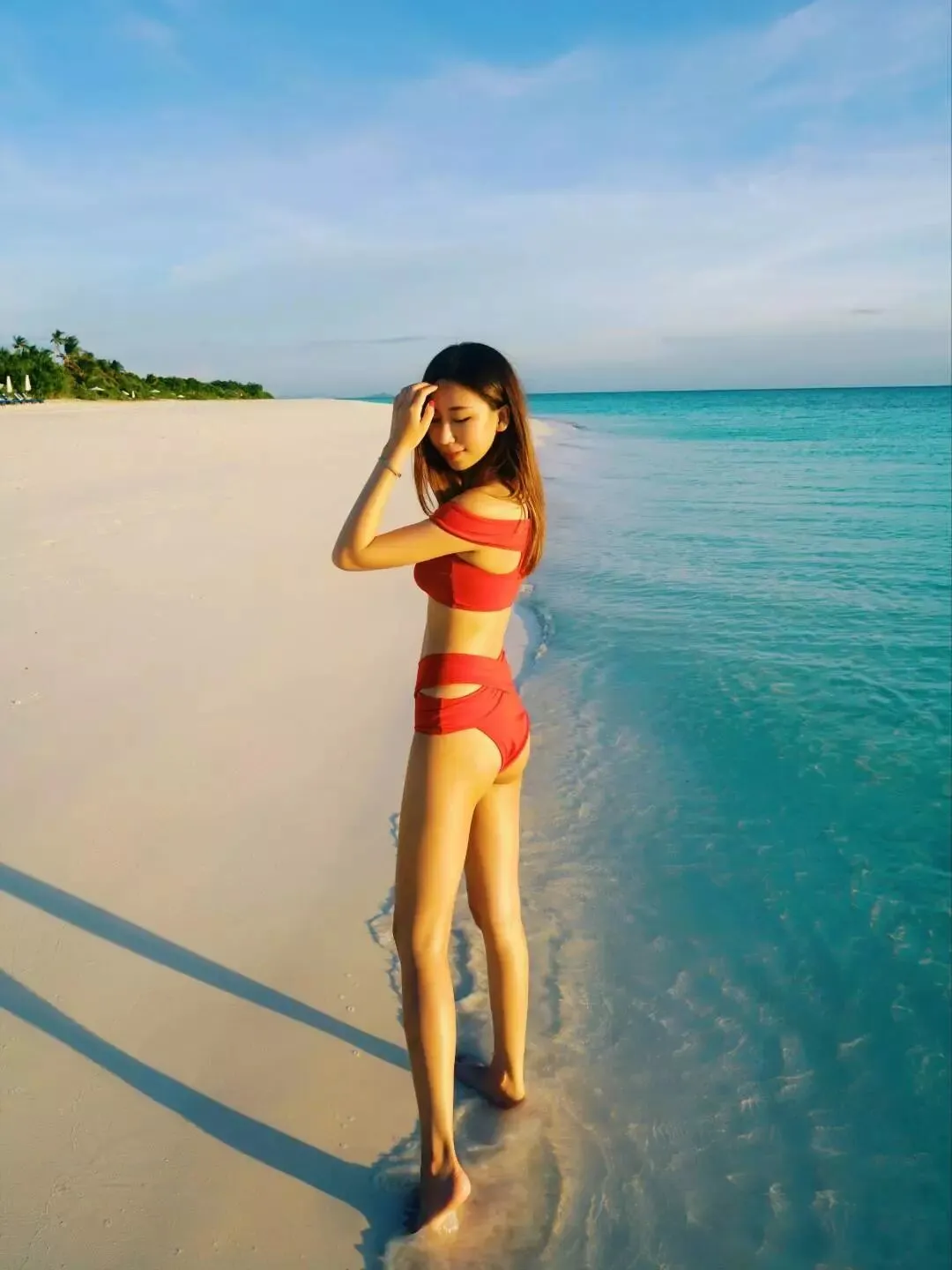 一件式高叉泳衣!腿能加长10公分,但为了中和裸露感,最好胸部就不要再有特别的设计,一件式是好选择。上图的泳衣,看似简单,但是我这辈子遇到过,最显瘦显腿长显胸大的款式。