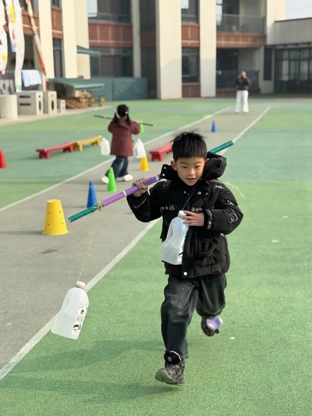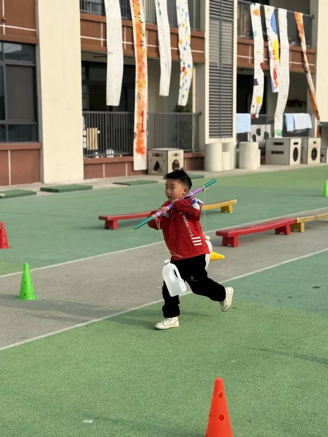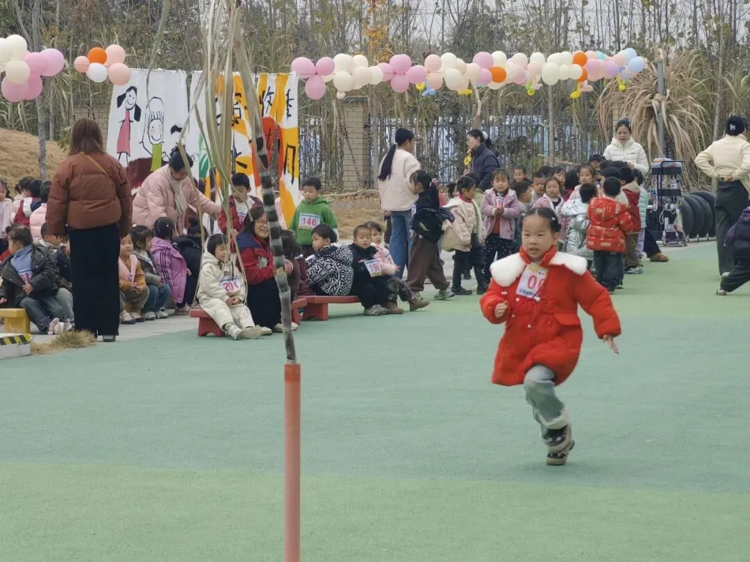 清脆的哨声响起,中大班组的甘蔗往返跑比赛正式开跑!小选手们脚下生风般冲向折返点,转身时动作干脆利落,丝毫不敢放慢脚步。赛道上的你追我赶,不仅考验着孩子们的速度与平衡,更让赛场充满了紧张又欢乐的氛围。