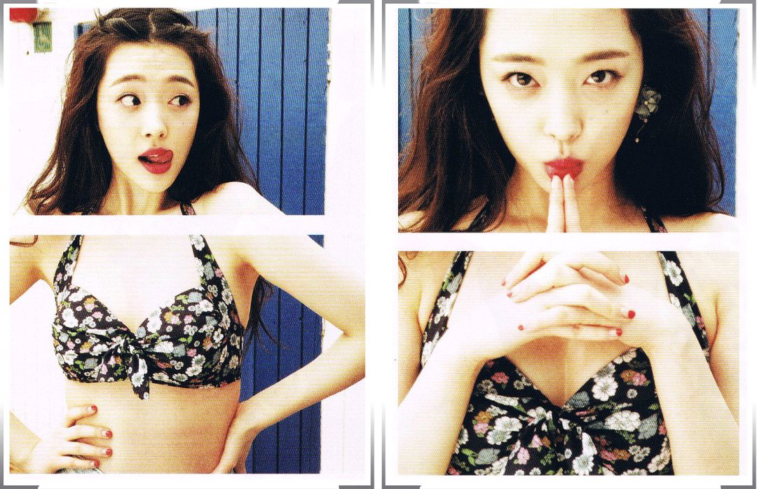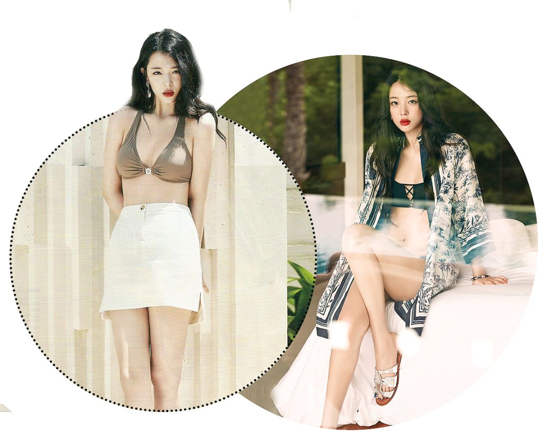 像这样直接把泳衣外穿,宣美拍杂志、拍mv时都干过👇