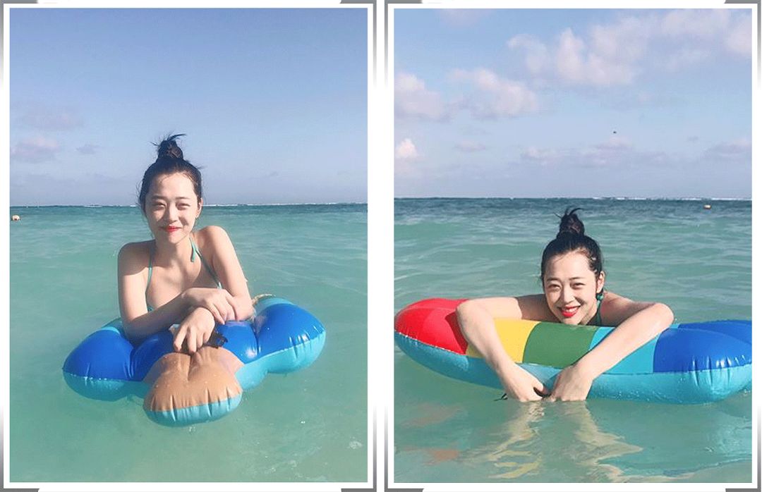 她的泳装照,也是此次上榜的女明星中,最接地气的一个。其他女明星的泳装照要么凹身材,要么摆出各种美美的表情动作,而小文具完全就是「随便拍」。