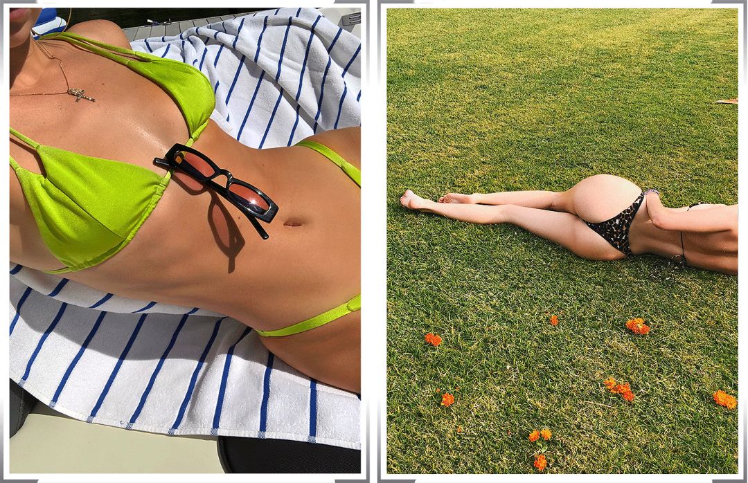 她最喜欢的款式是布料超少的三点式,配上她古铜色的小麦肌,跟蓝天绿地在一起,画面赏心悦目👇